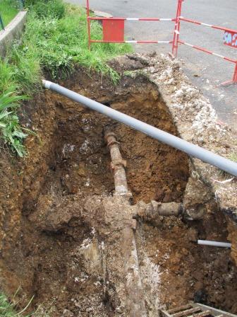 Renforcement du réseau d'eau en diamètre 150 et installation d'un poteau incendie, rue derrière l'église.